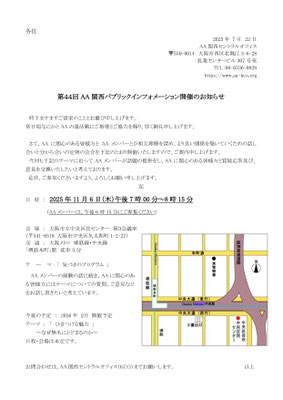 主催: AA関西地域委員会/AA大阪南地区「ようこそAA!!」実行委員会