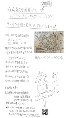 備考: AAメンバー以外の方々にAAのご紹介をする、広報のミーティングです。興味のある方はご参加ください。
